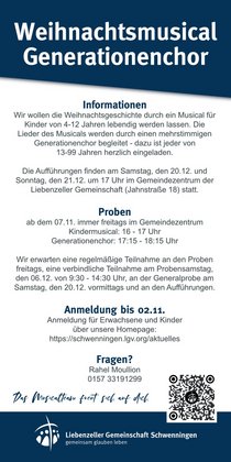 Wir laden ein zu unserem Weihnachtsprojekt - jeder ist willkommen. Weitere Infos findet ihr auf dem beigefügten Flyer.